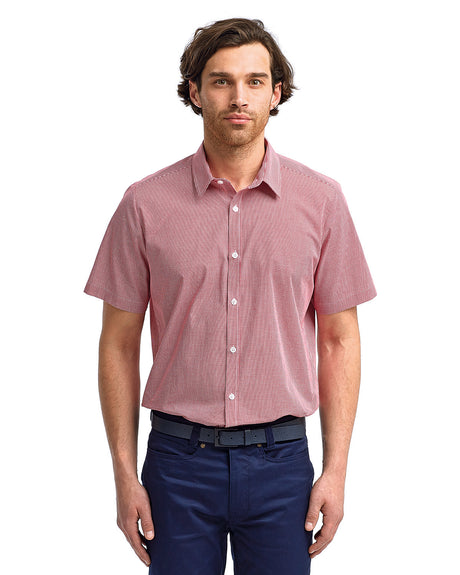Men's Microcheck Gingham Short-Sleeve Cotton Shirt