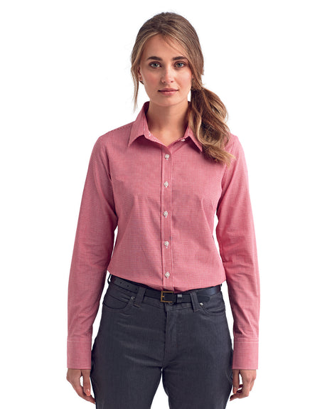 Ladies' Microcheck Gingham Long-Sleeve Cotton Shirt