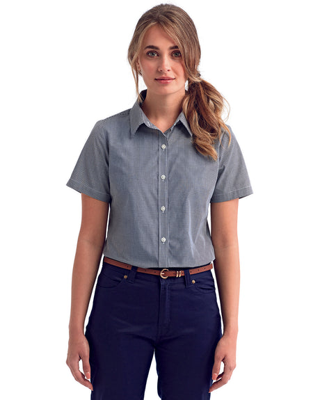Ladies' Microcheck Gingham Short-Sleeve Cotton Shirt