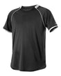 • 100% cationic colorfast polyester interlock, moisture-management fabric