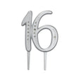 Elevate your cake with elegance using these silver-finished numerals adorned with shiny, clear rhinestone accents. Each numeral features a pic at the bottom for easy insertion into cakes. Height does not include pic.
