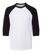 Youth Three-Quarter Sleeve Baseball Tee - White/ Black / S is backordered and will ship as soon as it is back in stock.