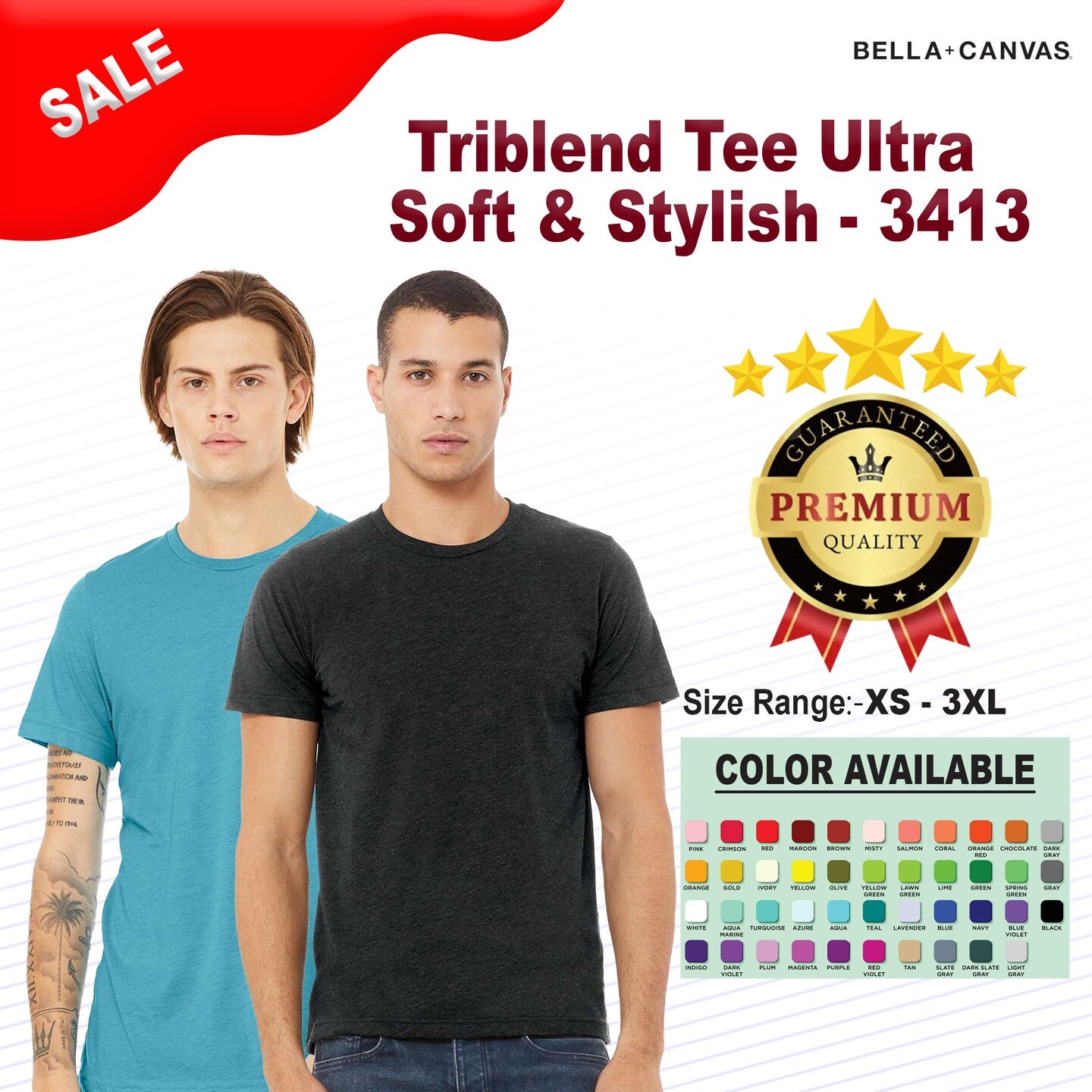 Experience superior comfort and style with the Bella+Canvas Triblend Crewneck Short Sleeve Tee. Made from a premium blend of polyester, Airlume combed and ring-spun cotton, and rayon, this 3.8 oz. tee offers unbeatable softness, stretch, and breathability. Perfect for casual wear or layering, it delivers a modern fit with a smooth finish. The Black Heather Triblend features a slightly adjusted fabric mix for added texture and durability. Ideal for printing, branding, or everyday comfort.