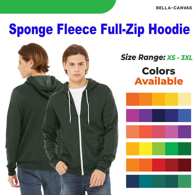 Bella + Canvas® Sponge Fleece Full-Zip Hoodie Sweatshirt