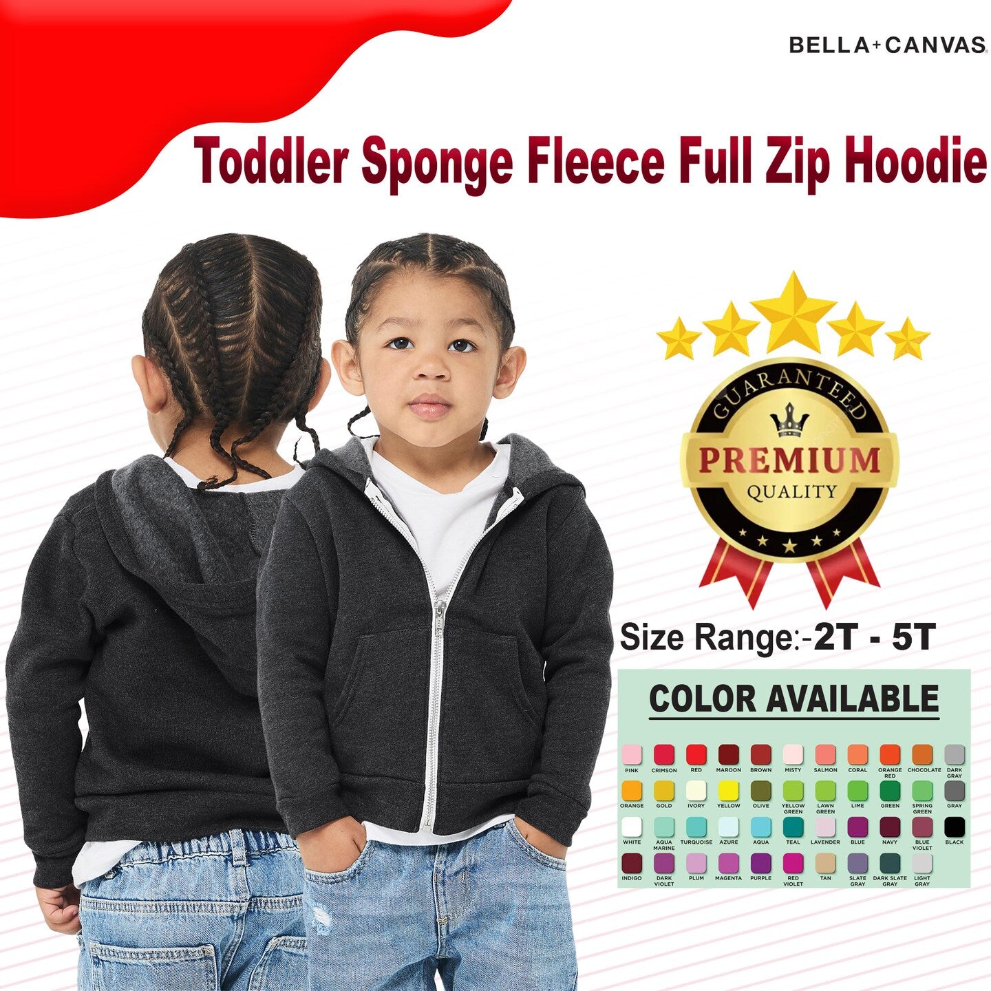 BELLA + CANVAS® Toddler Sponge Fleece Full Zip Hoodie