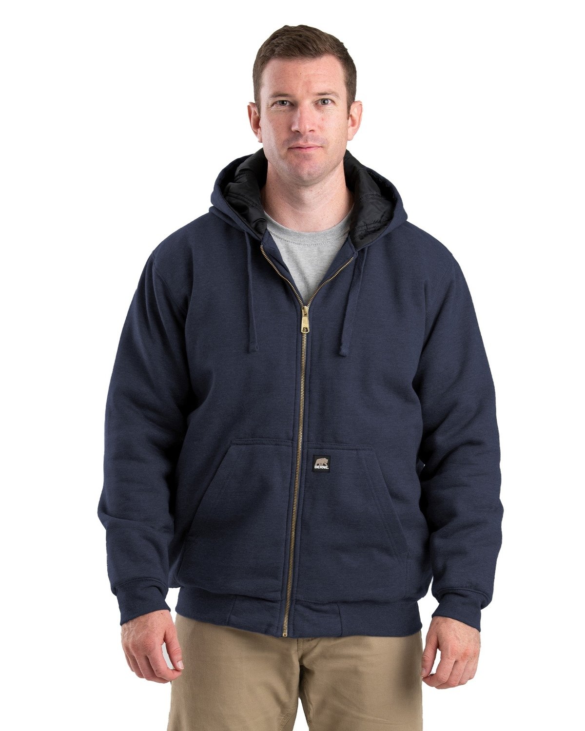 This versatile jacket features a 10.5 oz., 60% cotton, 40% polyester fleece shell with a heavyweight quilt-lined taffeta body for warmth and durability. The water-repellent surface ensures that you stay dry in light rain, while the quilt-lined three-piece hood with a drawstring offers added protection against the elements. Rib-knit cuffs and waistband help seal in warmth, and reinforced bartacks at stress points ensure long-lasting durability.