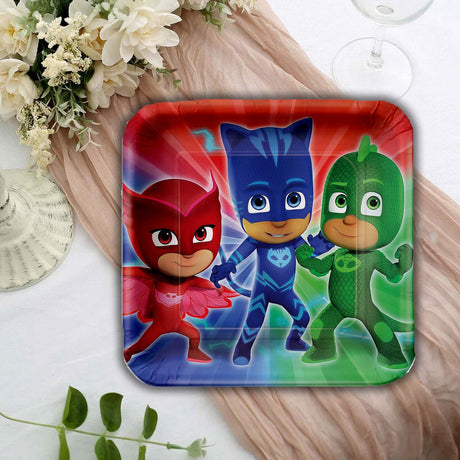 8 Ct. PJ Masks Square Dinner Plates Heroic Party Fun 9"