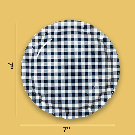 8 Ct. Navy Gingham Paper Dessert Plates 7" Rustic Party Checkered Plates
