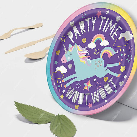 8 Ct Unicorn Birthday Party Dessert Plates 7" Round Pastel Rainbow Design