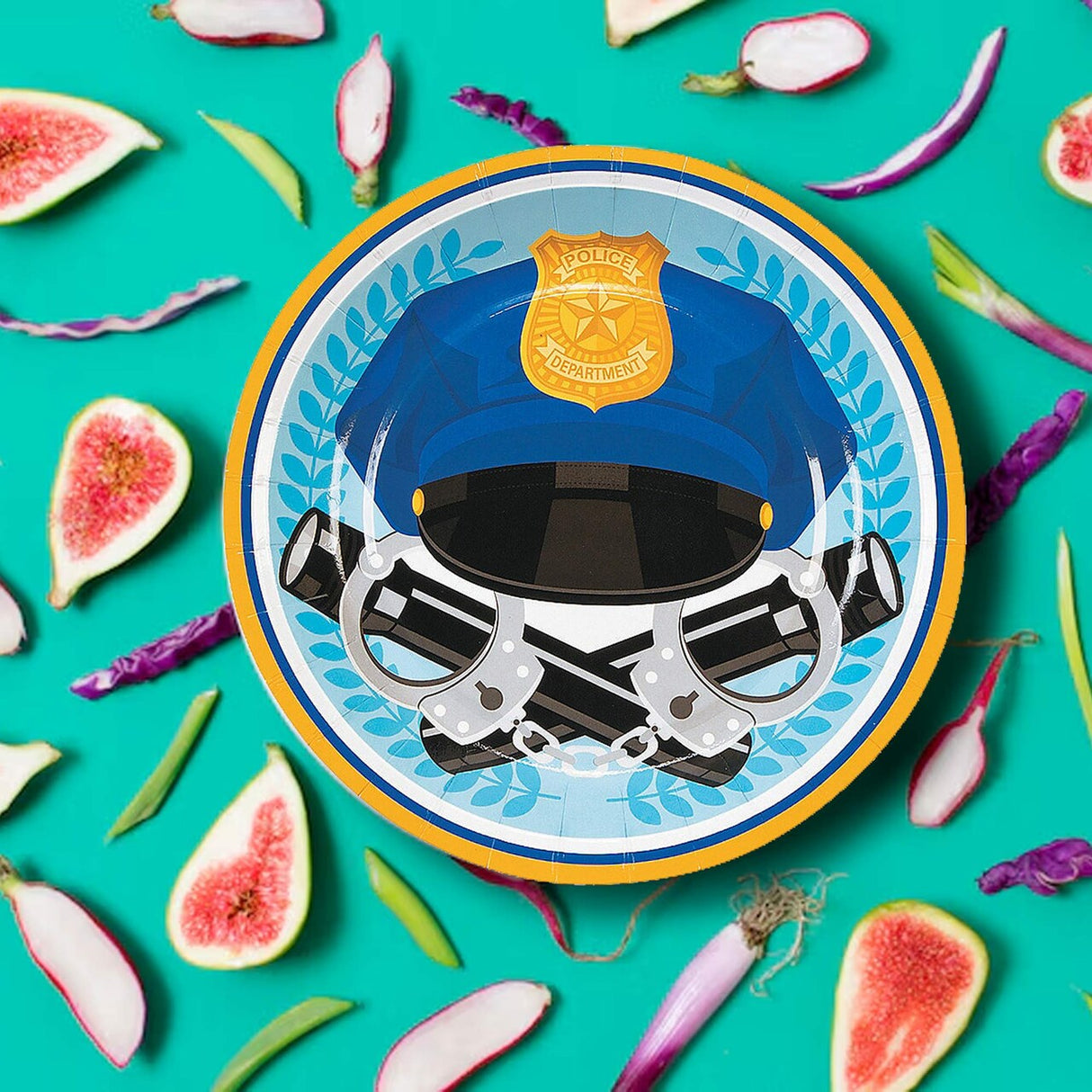 Serve up birthday treats with official style using these Police Party Dessert Plates! Decorated with police hats, badges, and handcuffs, these 7-inch plates are a fun and functional addition to any law enforcement or police-themed party. Made from sturdy paper, they’re perfect for cake, snacks, and quick cleanup.