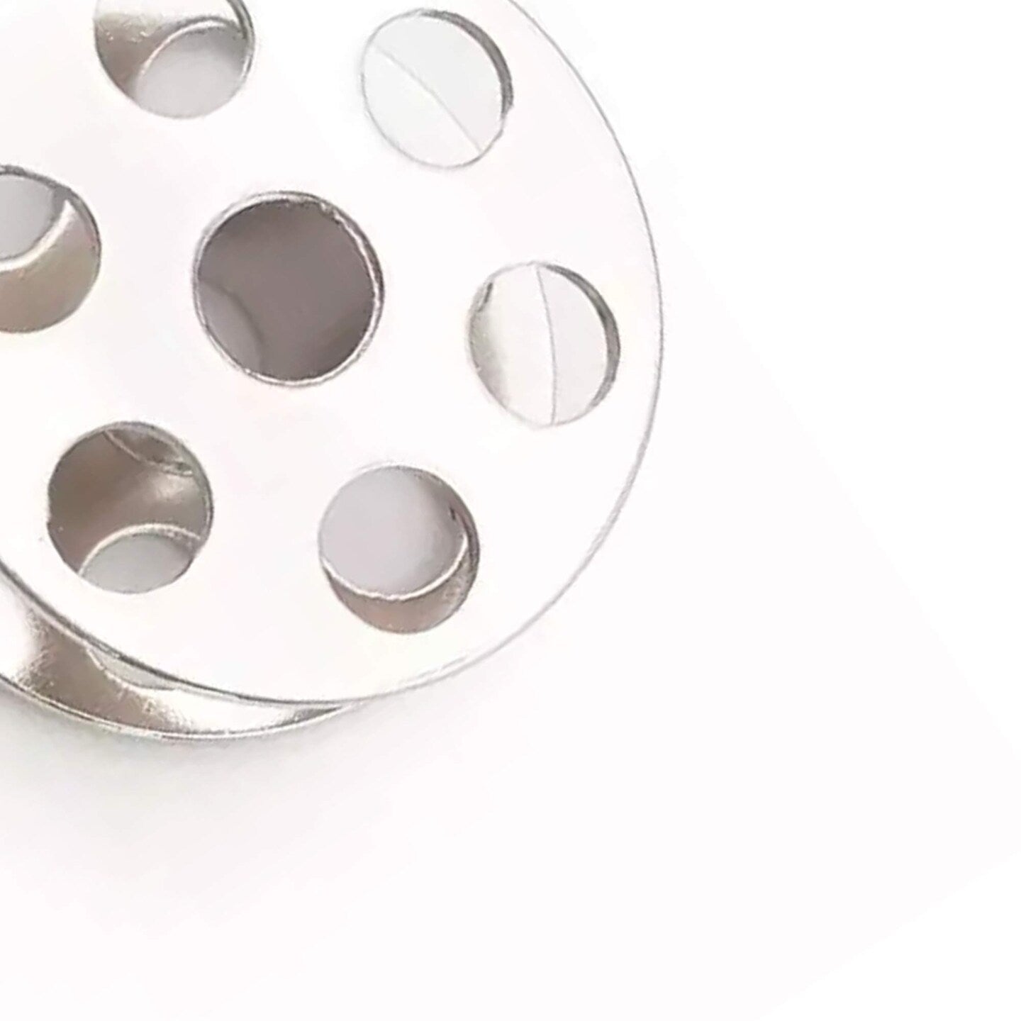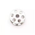 This heavy-duty large-capacity bobbin is designed for walking foot and double-needle industrial sewing machines, providing smooth thread flow and consistent stitching. Measuring 1-1/16" diameter x 7/16" tall, it features holes on both sides for optimal performance. Available in black or silver, it fits many industrial large hook-size machines. Always check your machine manual to confirm compatibility.