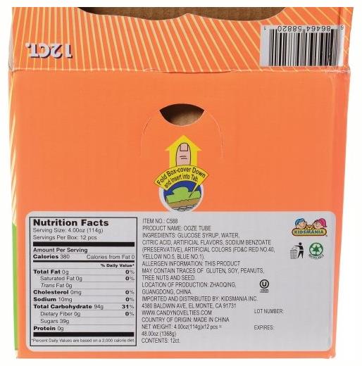 This tangy ooze is a first choice candy for most kids. Gooey, gross, tangy and sweet it's the perfect combination to please any child.