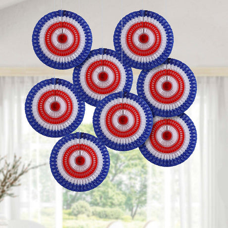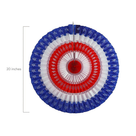 16" Patriotic Red, White & Blue Hanging Paper Fans 6 Pieces