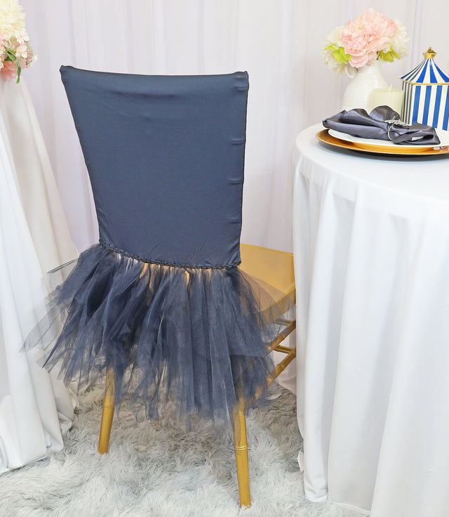 Bring understated elegance and contemporary style to your event with our Pewter/Charcoal Ballerina Spandex Chiavari Chair Cover. Crafted to fit Chiavari chairs perfectly, this cover combines a modern neutral palette with a sleek, form fitting design. The rich pewter and charcoal tones add depth and sophistication, ideal for weddings, banquets, corporate events, and upscale parties. Made from premium 4 way stretch spandex, the cover hugs the chair smoothly, offering a wrinkle resistant and secure fit throughout your occasion. The flowing ballerina skirt detail lends a graceful, artistic flair reminiscent of a dancer’s tutu, enhancing your event décor with charm and fluidity.