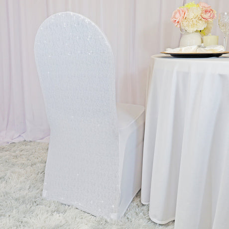 Ivory Sequin Spandex Chair Cover Stretch Fit