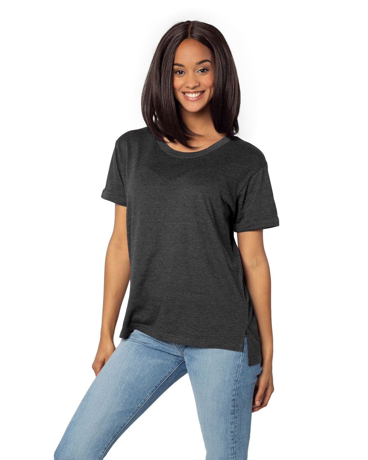 - Ribbed scoop neck for a classic and stylish appearance, with rolled sleeve cuffs