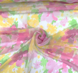 This white, yellow, and pink chiffon fabric is made from 100% polyester and offers a soft, airy drape with a sheer finish. Measuring 56/58" wide, it's perfect for scarves, shawls, blouses, evening wear, and decorative uses like event backdrops, gift wrapping, and home décor accents. Machine washable and easy to work with. Sold by 1 yard order required.