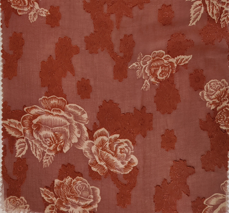 1 Yard Brown Jacquard Chiffon Lightweight Sheer Fabric with Textured Woven Pattern, 57/58" Wide