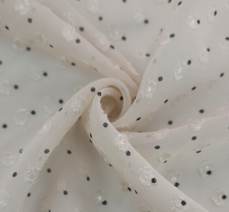 1 Yard Black or Ivory Clip Dot Chiffon Lightweight Sheer Polyester Fabric 57/58" Wide