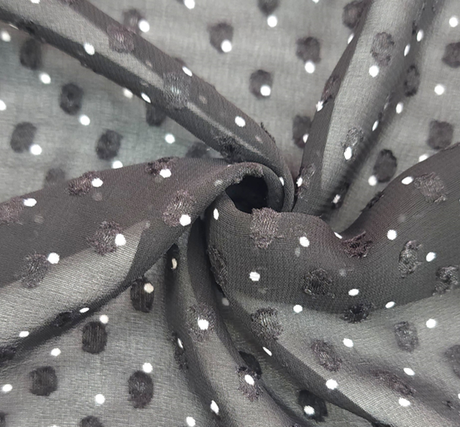 1 Yard Black Poly Clip Dot Chiffon Lightweight Sheer Polyester Fabric 57/58" Wide