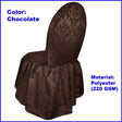 Add timeless charm to your event with this Chocolate Floral Damask Jacquard Banquet Chair Cover with Skirt. Made from premium 220 GSM polyester, it features a richly textured damask pattern and a flowing full length skirt, offering classic elegance for weddings, receptions, corporate galas, or banquets. Designed to fit standard banquet chairs (excludes square and crown tops), it brings a refined finish to your seating.