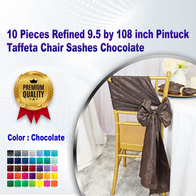 10 Pieces Refined 9.5 by 108 inch Pintuck Taffeta Chair Sashes Chocolate