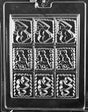 - 1 cavity per mold; 9 squares of 2" x 2-1/4" - 3 Hearts, "Love" and Tuxedo/Bridal gown.