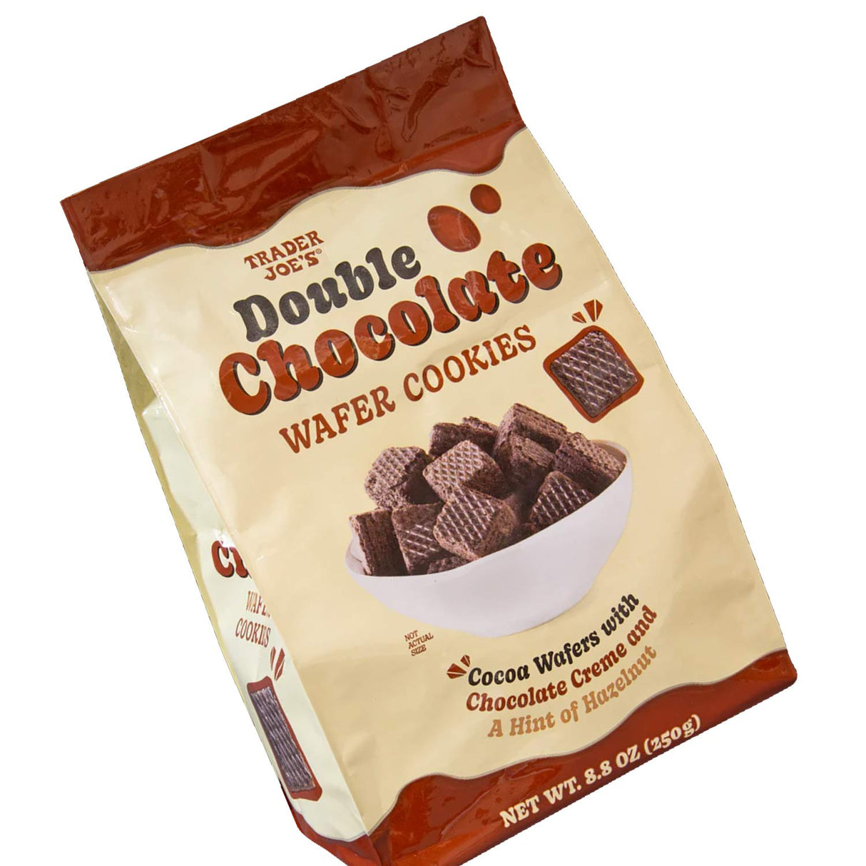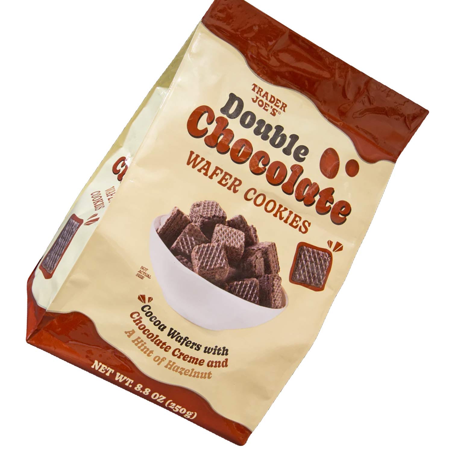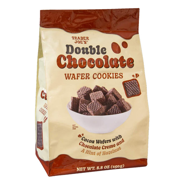 Trader Joe’s Double Chocolate Wafer Cookies are bite-sized, crispy treats featuring layers of delicate chocolate wafers filled with smooth chocolate cream. With a subtle hint of hazelnut, these cookies offer a rich, chocolatey flavor without being overly sweet. Perfect for snacking, sharing, or pairing with coffee, they come in a convenient 8.82 oz resealable bag.