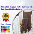 1 Piece Rich Chocolate Chiffon Chair Cover with Sash Elegant Wedding Backdrop