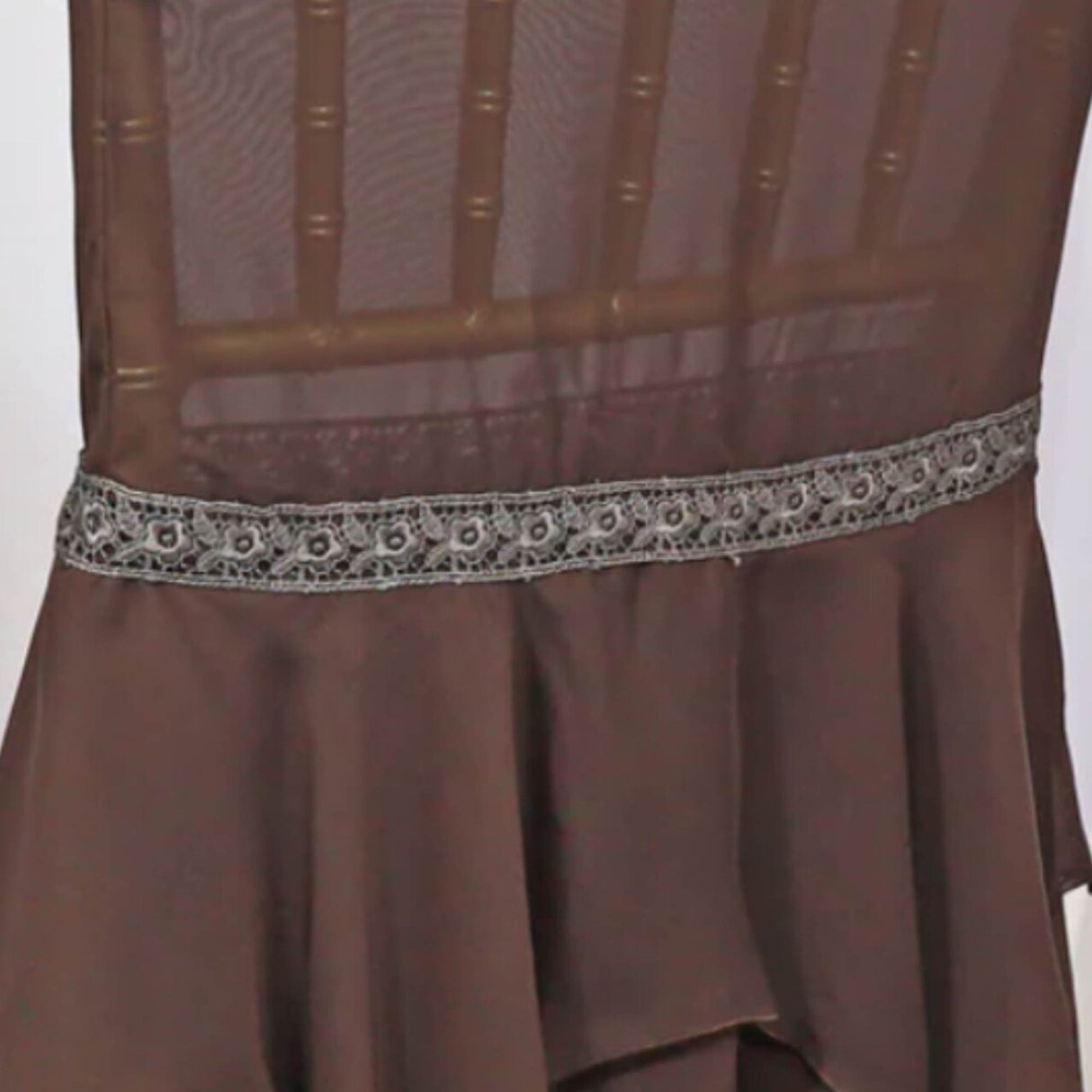Enhance your event seating with this warm and inviting Chocolate Chiffon Chiavari Chair Cover. Designed to drape beautifully over Chiavari chairs, this piece adds an elegant touch of texture and depth to your venue. The rich chocolate tone creates a cozy yet sophisticated atmosphere, ideal for rustic themes, fall weddings, and elegant banquet setups.