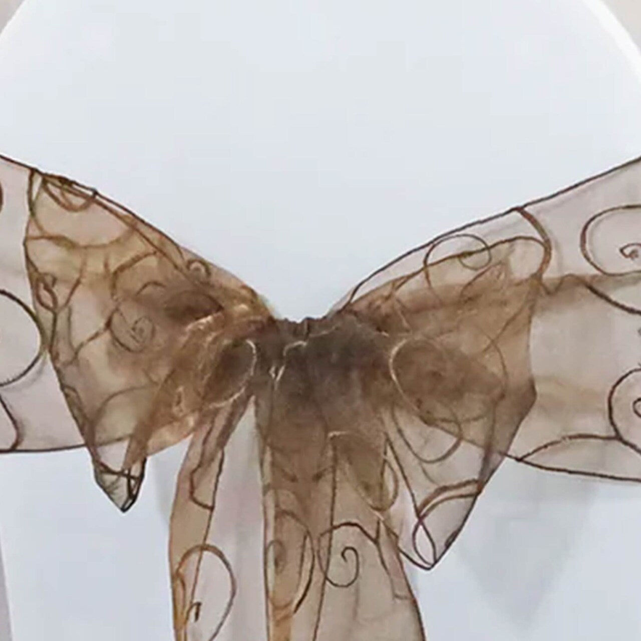Enhance your special occasion with the rich sophistication of our Chocolate Embroidered Organza Chair Sashes. Crafted from delicate, sheer organza fabric and adorned with exquisite embroidery, these sashes bring a luxurious and refined touch to weddings, formal dinners, corporate events, and gala settings.