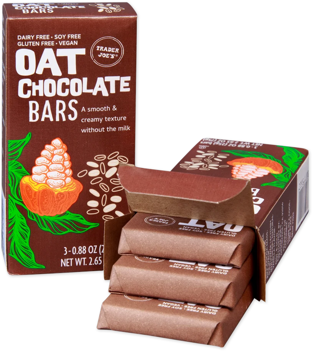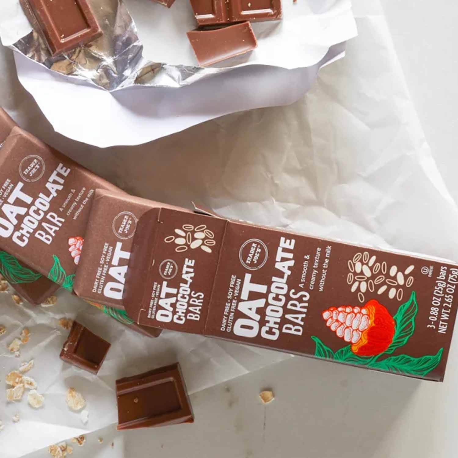 Trader Joe’s Oat Chocolate Bars offer a vegan-friendly alternative to traditional milk chocolate. Made with rich cocoa mass, cane sugar, and creamy oat milk, these bars come in a convenient pack of three individually wrapped bars.