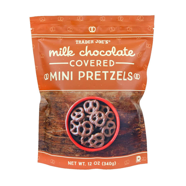 Some things are just meant to be together—like Trader Joe’s Milk Chocolate Covered Pretzels. Salted Mini Pretzels are generously coated with smooth, 35% cocoa solids milk chocolate, creating a sweet and rich flavor that complements the slightly salty crunch of the pretzel beneath.