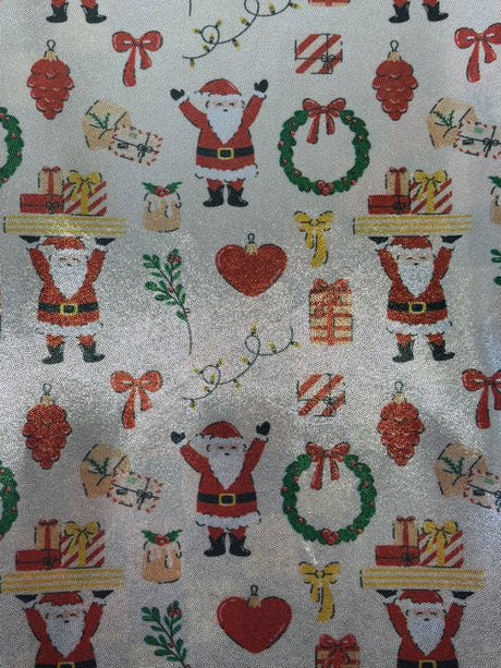 1 Yard Jolly Santa Red Mystique Stretch Spandex Fabric for Christmas Costumes and Dancewear