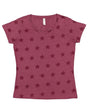 Women's Star Print Scoop Neck Tee - Burgundy Star / S is backordered and will ship as soon as it is back in stock.