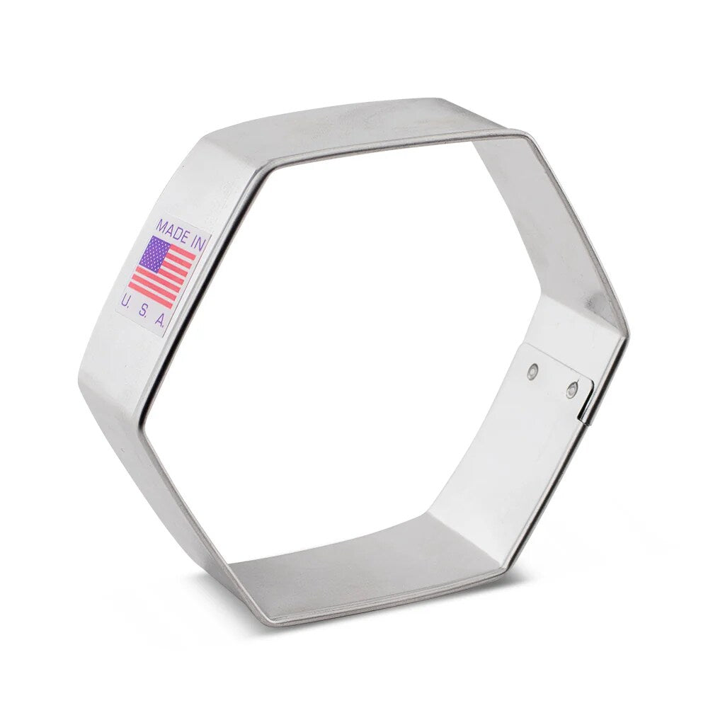 - Ann Clark Hexagon Cookie Cutter, 3 75" x 3 75" Key Points: Premium Quality: Made from durable, food-safe materials Perfect Design: 3 75-inch hexagon shape ideal for stylish, geometric-themed baking Versatile Use: Ideal for cookies, fondant, sandwiches, and craft projects Easy to Use & Clean: Sharp edges for precise cuts and effortless cleaning Made in the USA: Proudly crafted with American-made steel Blueprint for Geometric Baking: Gather Your Ingredients: Prepare your favorite cookie dough Roll & Cut: Use the Ann Clark Hexagon Cookie Cutter to create perfect hexagon shapes Bake to Perfection: Follow your recipe's instructions until cookies are golden brown Decorate & Enjoy: Add icing, sprinkles, and edible decorations to bring your hexagon cookies to life Elevate your baking with the Ann Clark Hexagon Cookie Cutter! Perfect for creating unique and stylish treats that will stand out at any occasion.