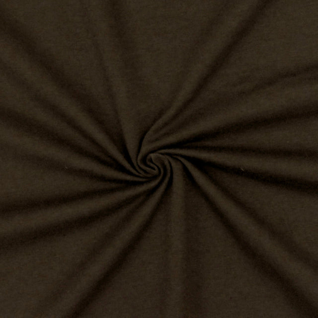 - Dark choco brown solid cotton jersey knit fabric with a soft, matte finish, perfect for basic tees, blouses, and activewear