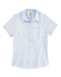 Women's Short Sleeve Stretch Oxford Shirt - Blue/ White Stripe / XS is backordered and will ship as soon as it is back in stock.