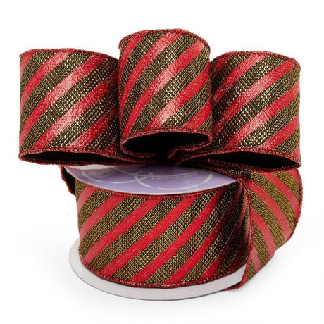 Striped Christmas Wired Ribbons 2 1/2 '' X 10 yd - Red / Gold Diagonal Stripes Color 1 / ROLL