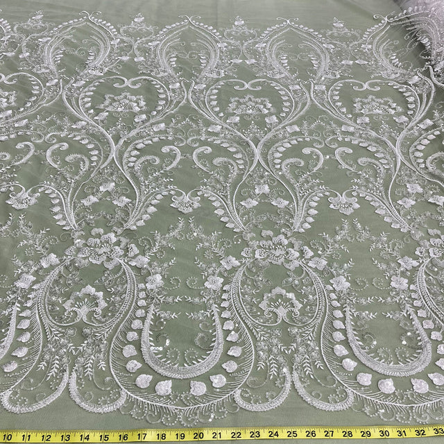 1 Yard Beaded Lace Fabric Embroidered on 100% Polyester Net Mesh - White is backordered and will ship as soon as it is back in stock.