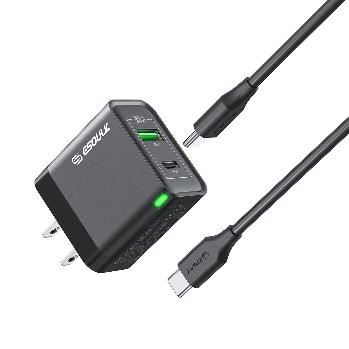 30W PD&QC Wall Charger + 5FT USB-C to USB-C Cable (12/48)