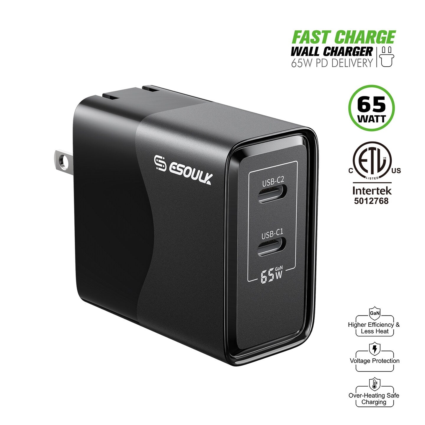 65W Gan Dual USB-C Wall Charger 12/48 - 4 COUNT
