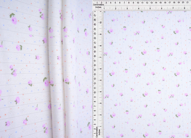 1 Yard Cotton Style Pointelle Ditsy Print Fabric 220 GSM Poly Spandex Knit 58/60" Width - LAVENDER is backordered and will ship as soon as it is back in stock.