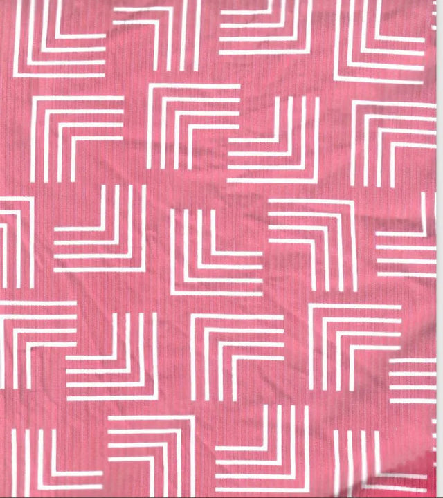 4x2 Yummy Rib Knit Fabric Retro Geo Print, Soft Stretch 58/60” Wide for Apparel - FUSCHIA/IVORY is backordered and will ship as soon as it is back in stock.