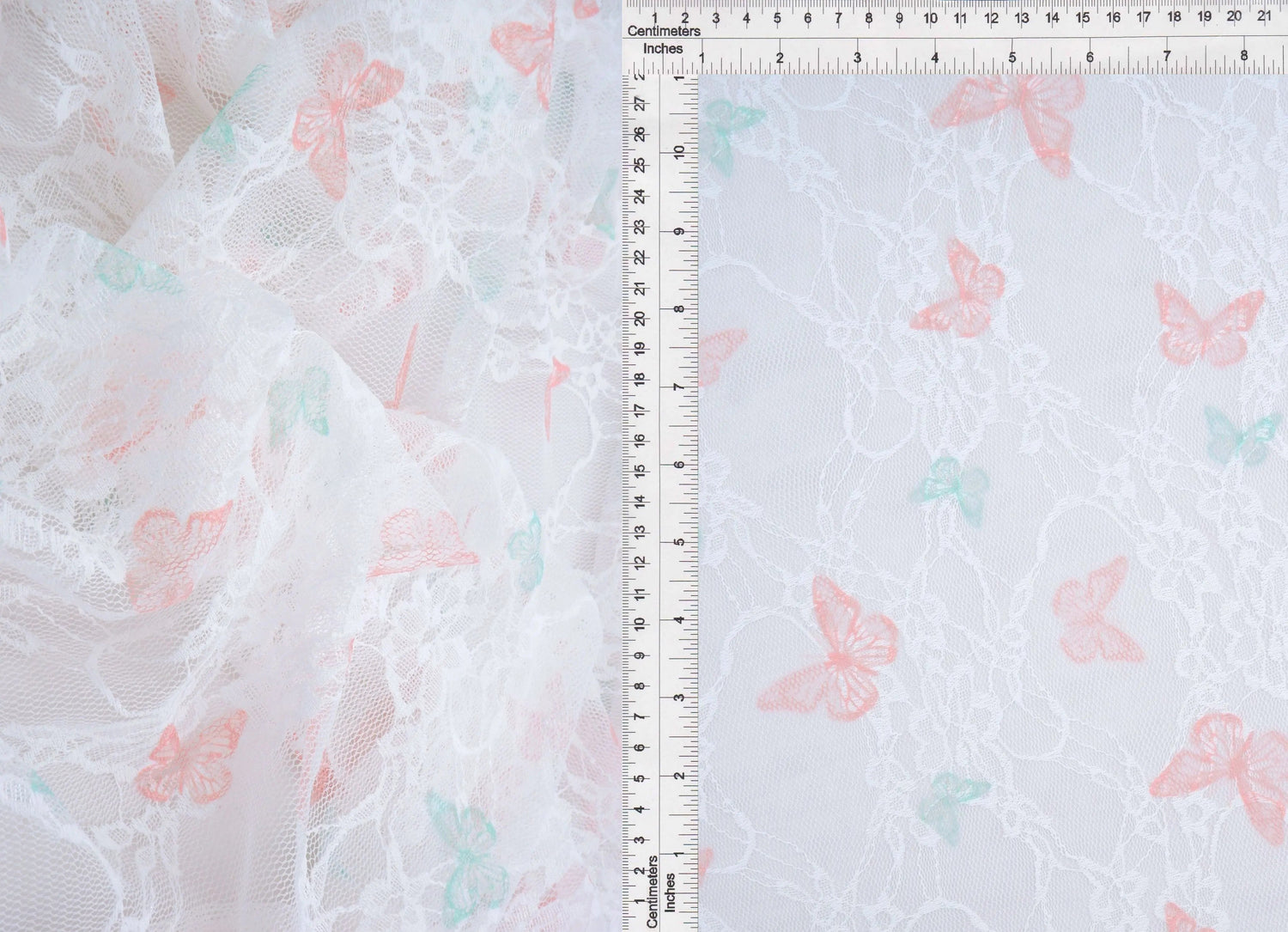Digital Butterfly Lace Print Fabric 92% Poly 8% Span Soft Stretch Material 56/58 Inches Wide