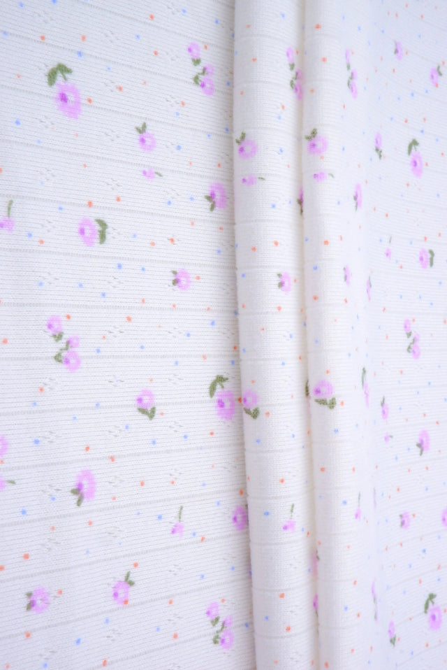 1 Yard 93% Polyester 7% Spandex Cotton-Style Pointelle Ditsy Print Fabric 58/60" Width - LAVENDER is backordered and will ship as soon as it is back in stock.