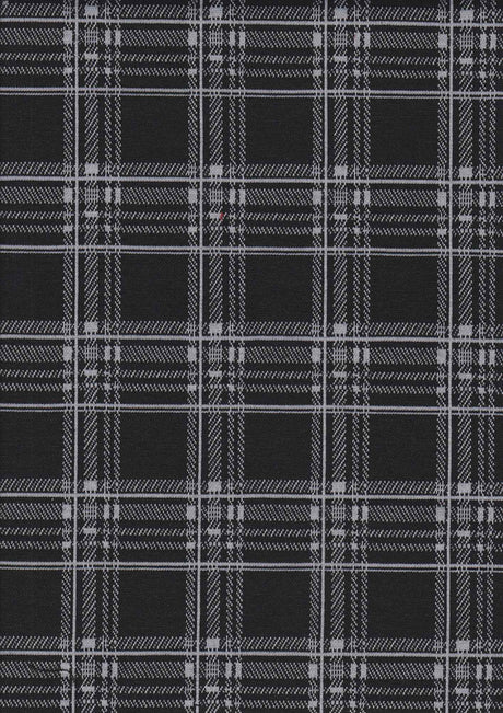 1 Yard Black Double Knit Jacquard Window Pane Yarn Dyed Plaid Fabric 58/60 Inches Wide