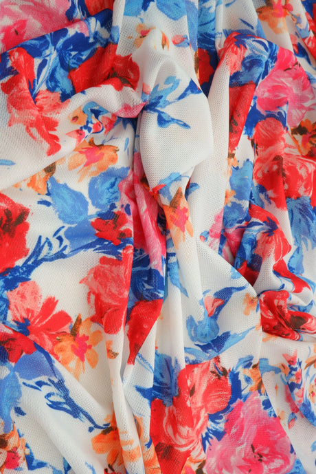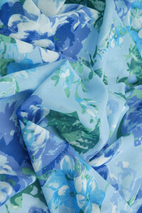 Digital Floral Print Mesh Fabric Soft Stretch Sheer, 54 Inches Wide