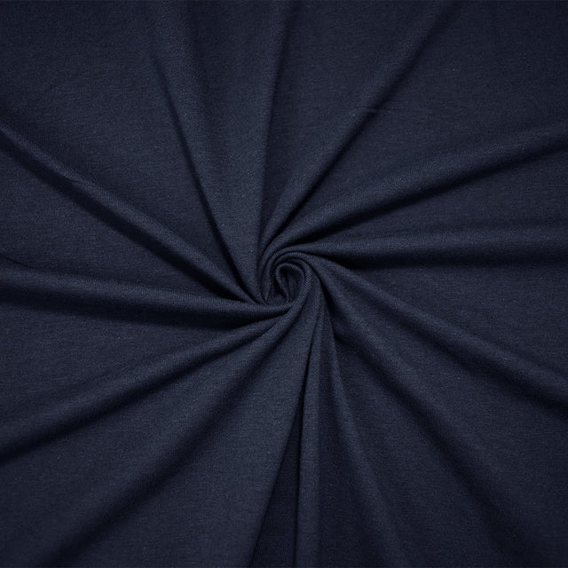 1 Yard Deep Navy Blue Cotton Stretch Jersey with a Matte Look, Soft and Flexible for Casual Wear and Layering, 60 Inches Wide