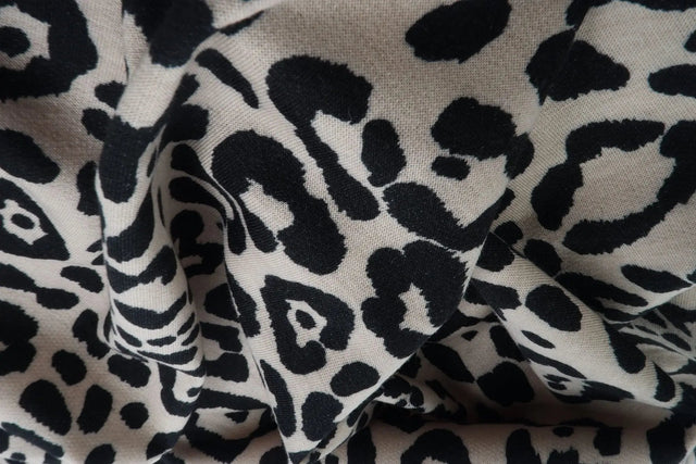 This French Terry knit fabric features a bold and stylish animal print design combining jaguar, cheetah, and leopard patterns. With a soft texture and medium weight, it's perfect for creating fashionable loungewear, sweatshirts, joggers, and casual pieces. The blend of polyester, rayon, and spandex ensures excellent comfort, stretch, and durability.